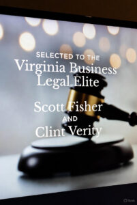 We are proud to announce that Scott Fisher and Clint Verity have been selected for the 26th edition of the Virginia Business Legal Elite. This prestigious recognition is issued annually by Virginia Business magazine (in cooperation with Virginia Bar Association) to recognize top attorneys in Virginia, as nominated by their peers.